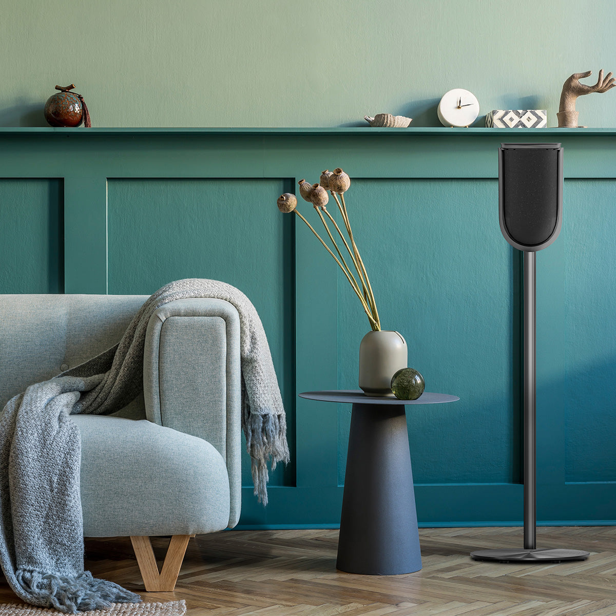 The BeoLab 8 Floor Stand in Black offers a sleek and modern touch to your audio setup. Crafted from premium aluminum, its matte finish seamlessly complements the BeoLab 8 speaker, enhancing its elegance and ensuring stability. This stand not only supports your speaker but also elevates its aesthetic, making it a standout feature in any room.