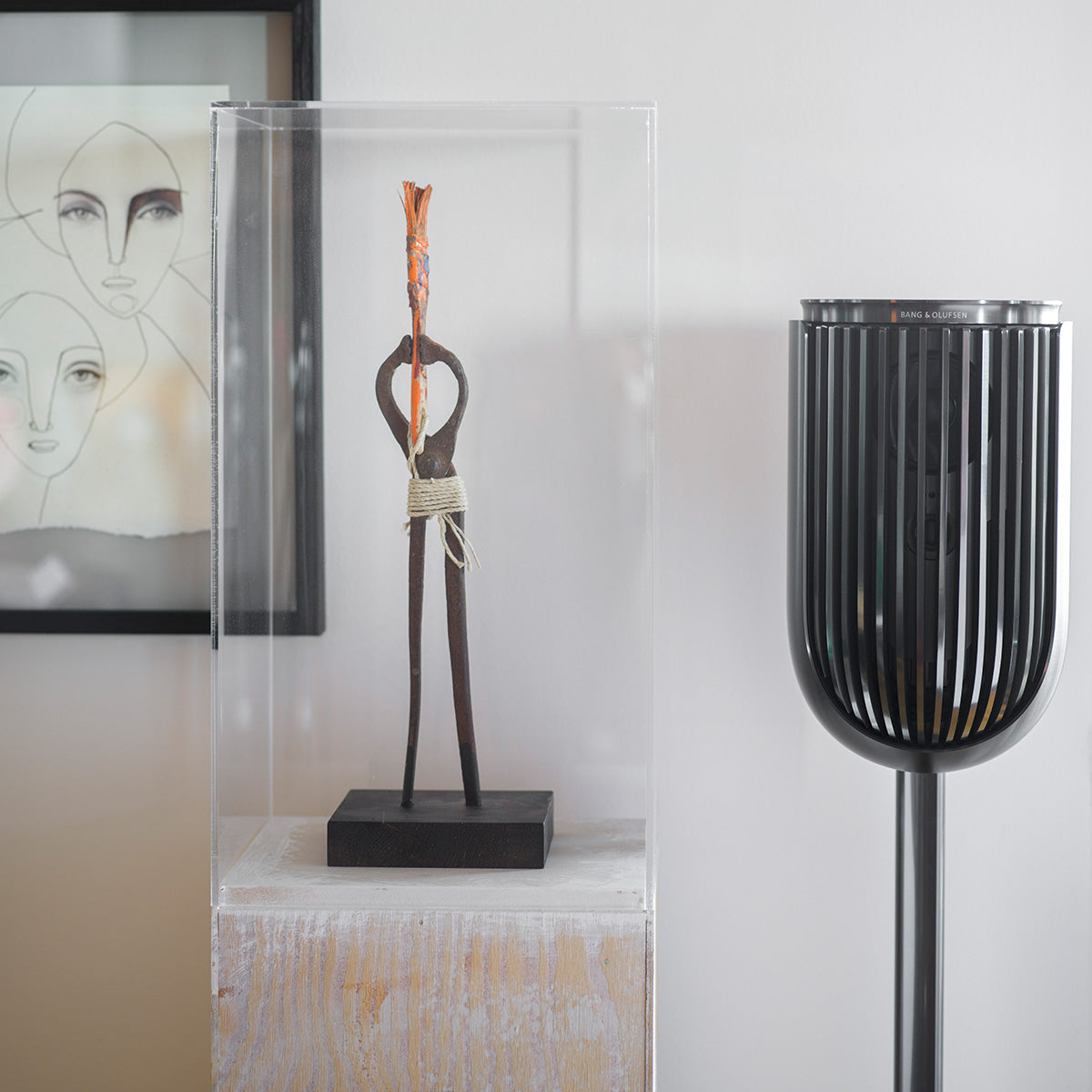 A polished, tone-matched aluminium cover that brings a clean highlight to the front stage; pair with BeoLab 8 aluminium covers for luminous stereo sound and set the visual tempo for your system.