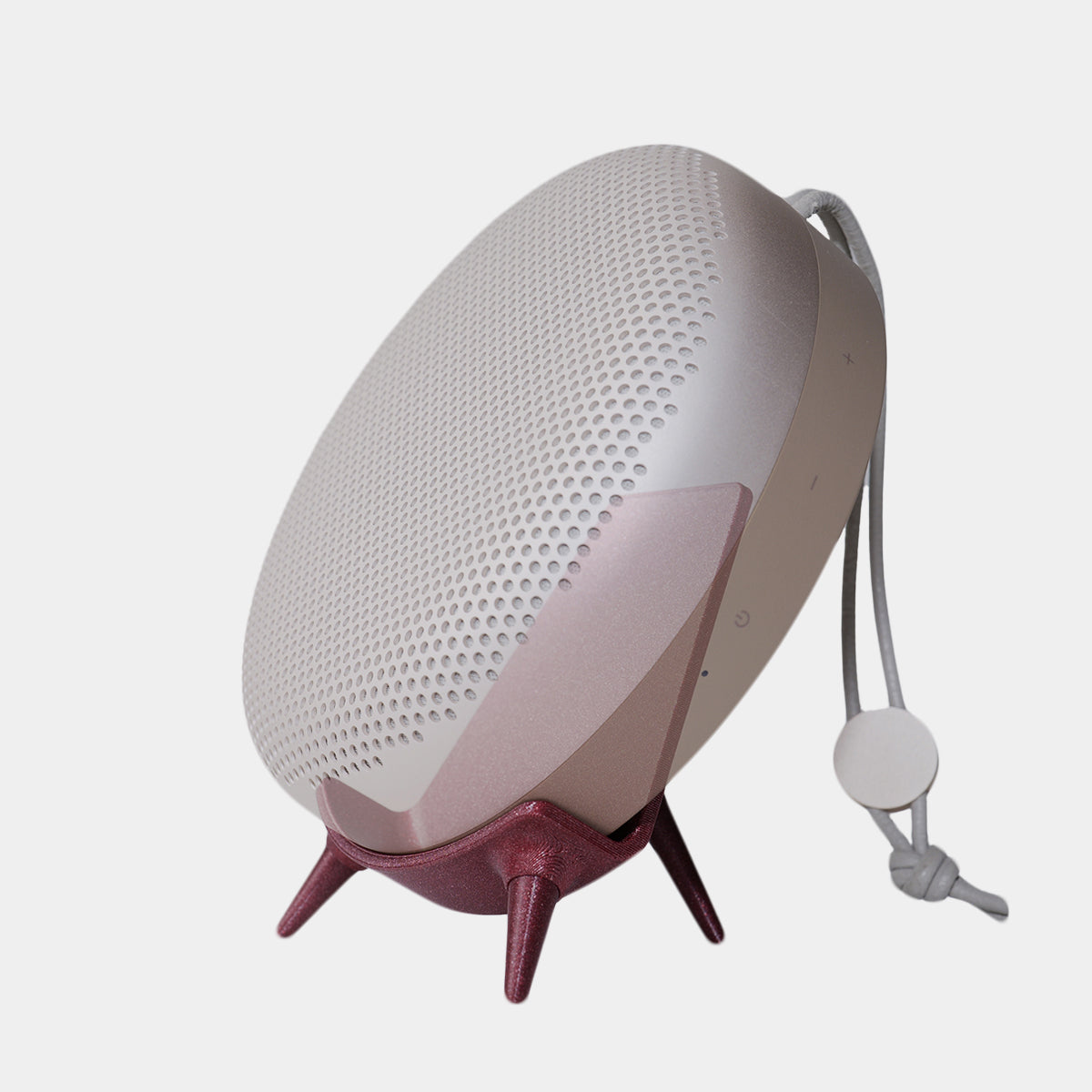 This 3D printed stand is a sleek, sturdy accessory designed to elevate and securely hold the Bang & Olufsen BeoPlay/BeoSound A1 speaker, enhancing its aesthetic appeal and sound projection.