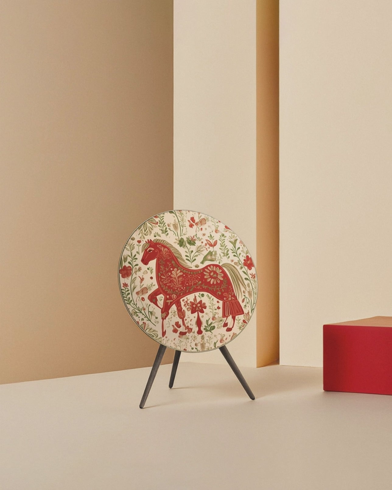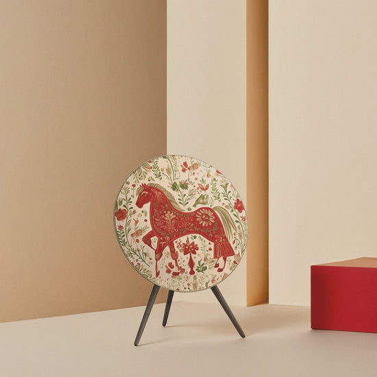 A folk-red horse prances through a garden of blossoms—bringing joyful luck, warmth, and handcrafted charm to your A9.