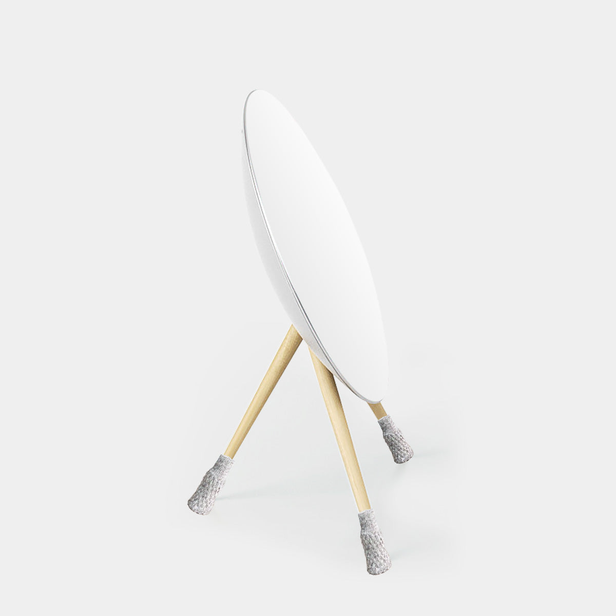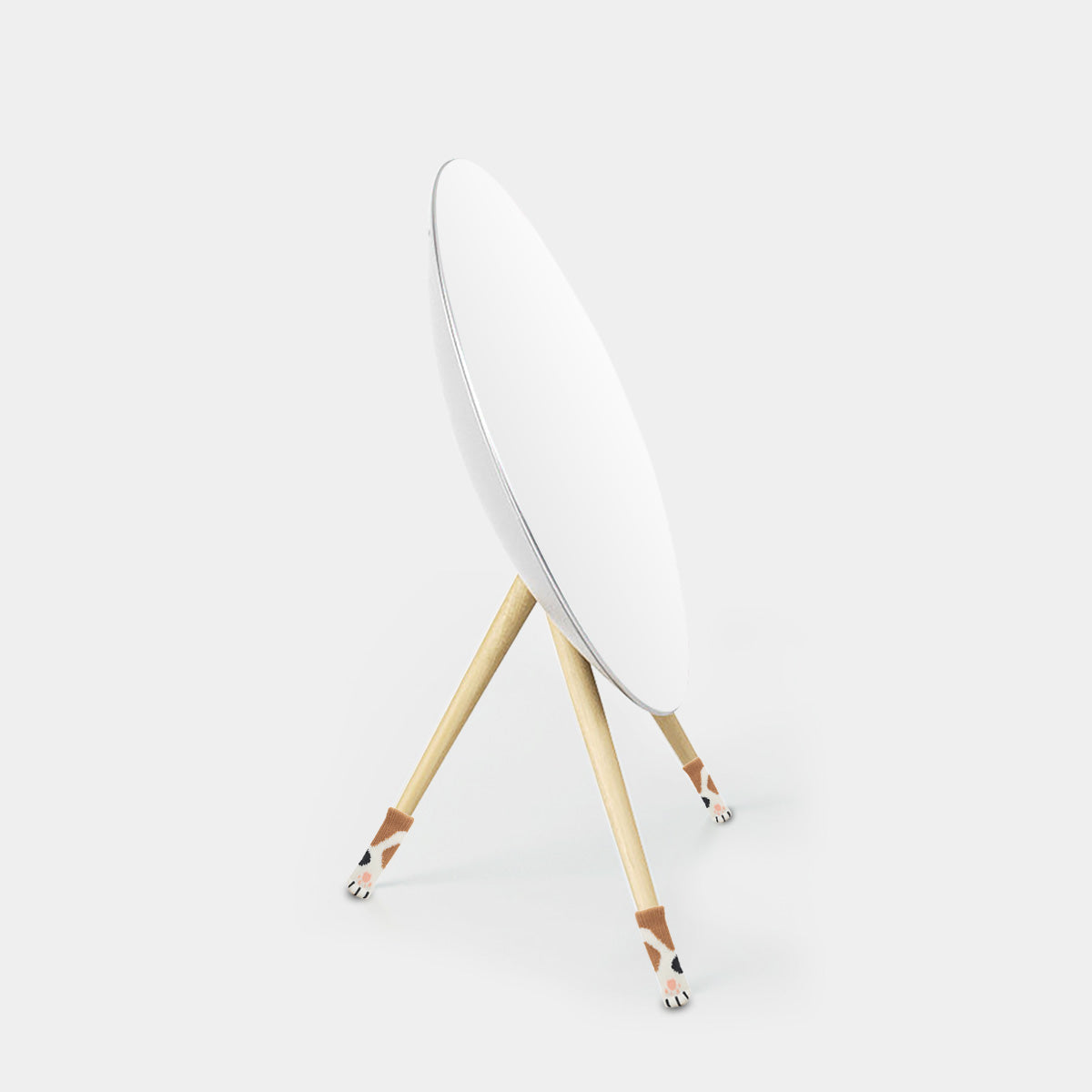 BeoPlay/BeoSound A9 Socks are a set of three stylish knit socks designed for the wooden stands of the speaker, offering dual functionality by protecting floors and infusing a touch of warmth to enhance the aesthetic appeal.