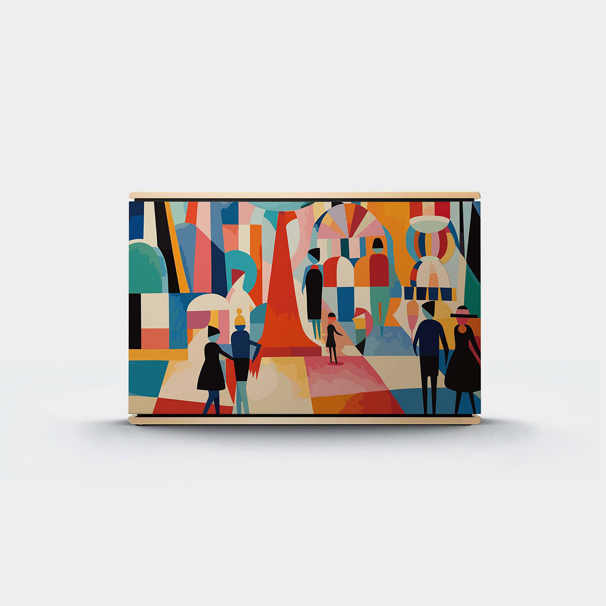 Transforms your speaker with a vibrant explosion of colorful patterns, blending festive artistry with exceptional sound quality.
