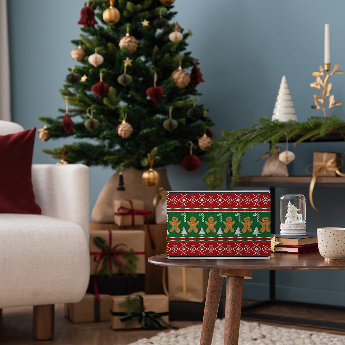 A fabric gingerbread man design that brings a cozy, festive charm to your space, as if he’s warmly guarding your home.