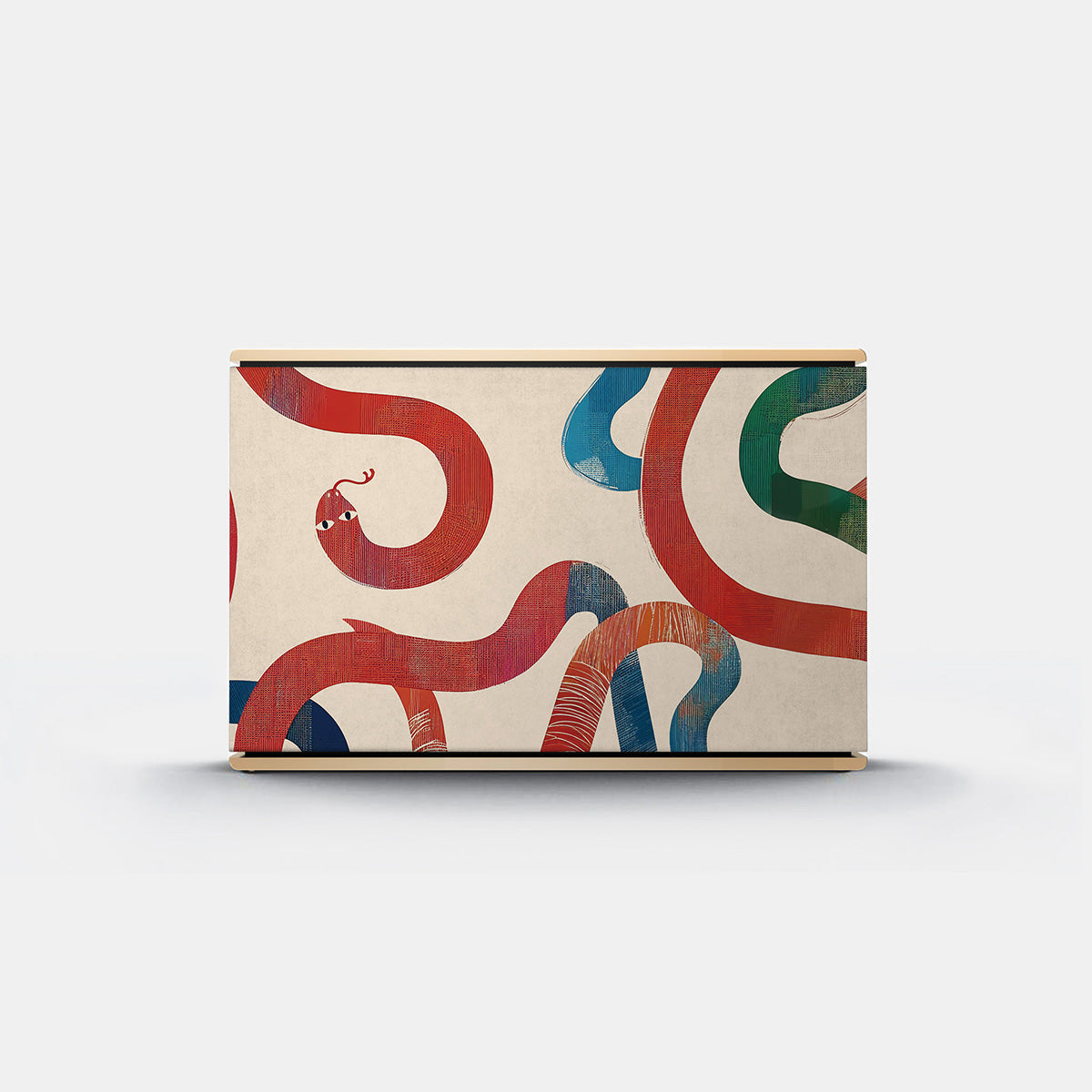 Lunar Serpent intertwines vibrant colors with graceful curves, celebrating the elegance and energy of the Year of the Snake.