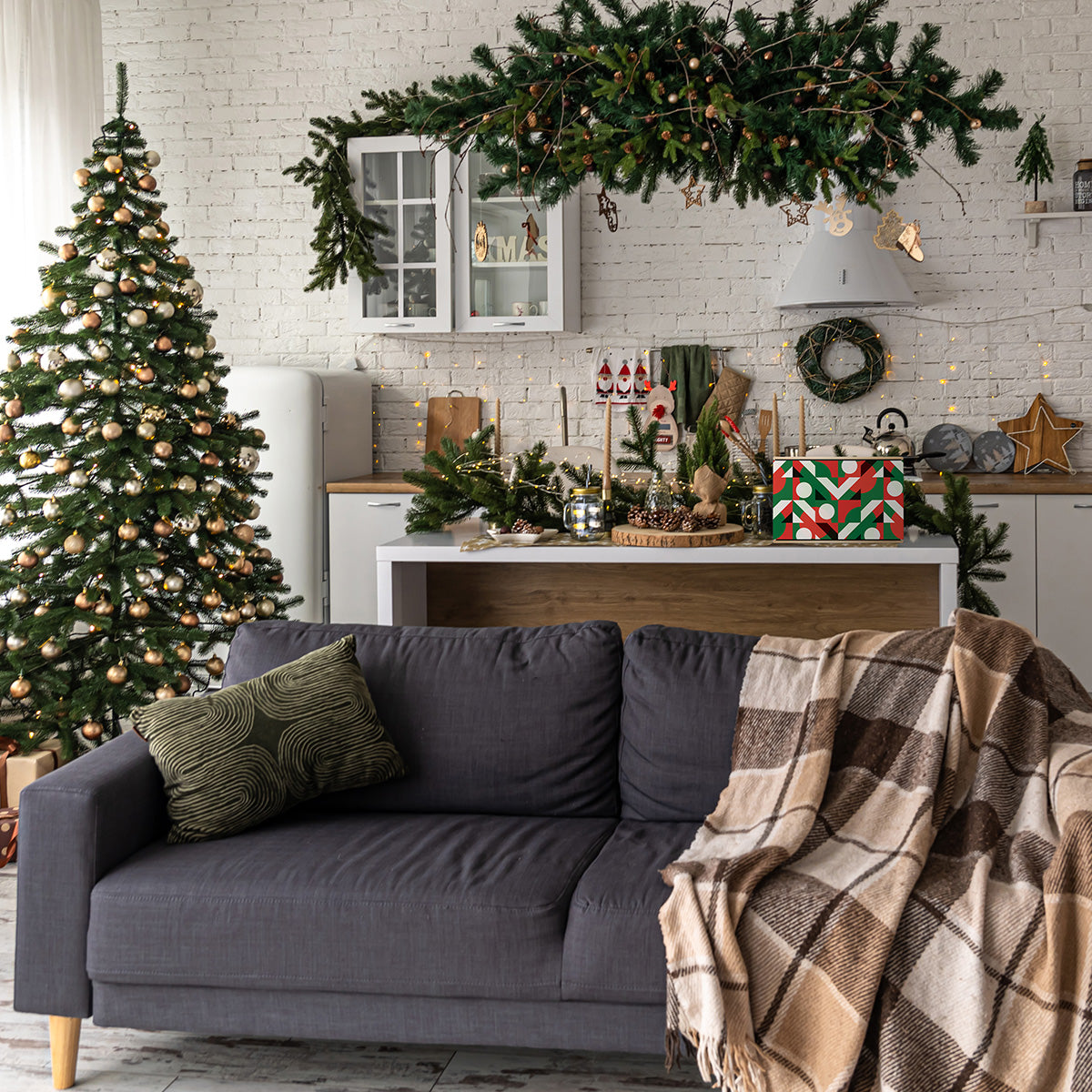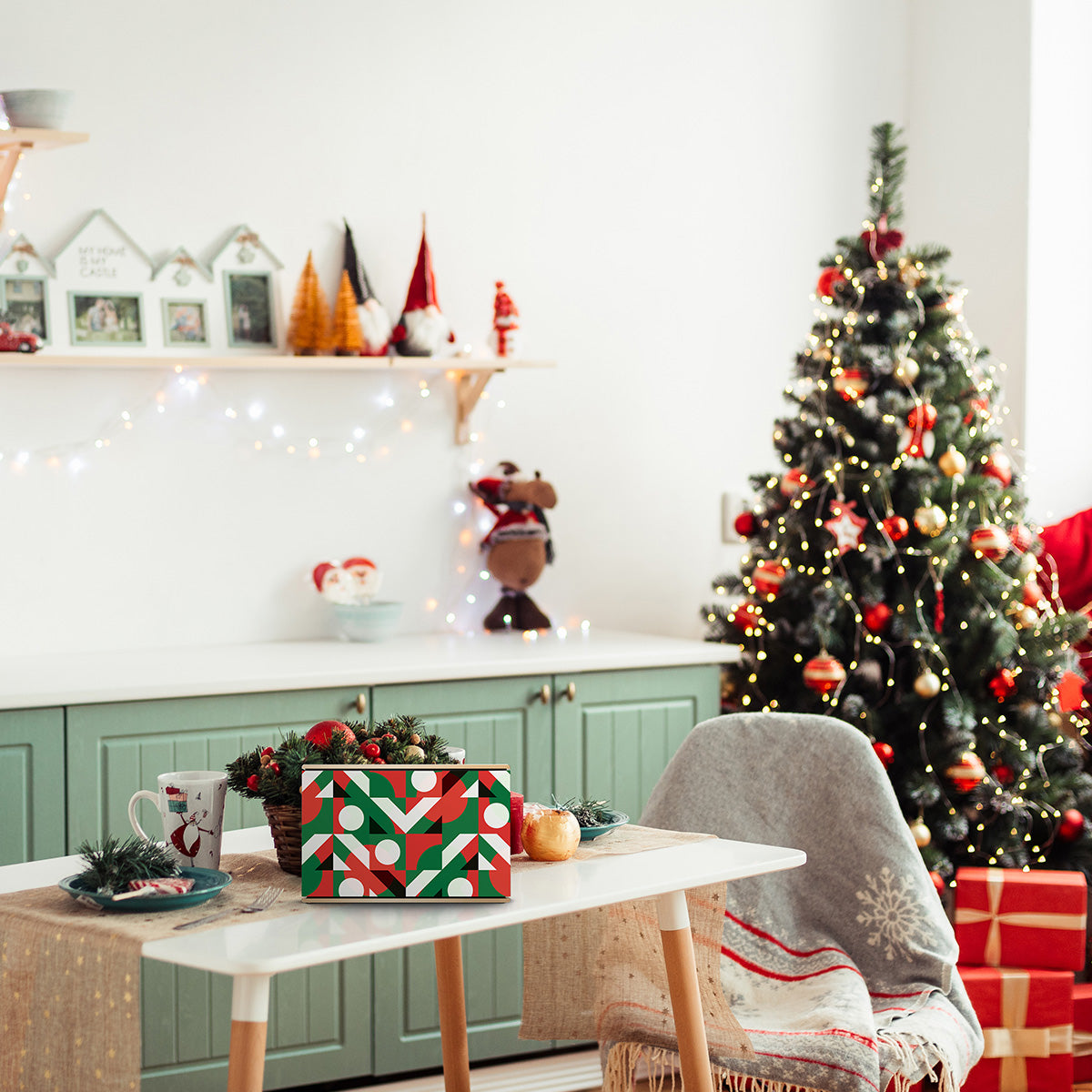 A Our design distills Christmas elements – snowflakes, Christmas trees, and the classic red, green, white, and black colors – into clean, contemporary graphics. These covers are perfect for creating a festive atmosphere in any home setting.